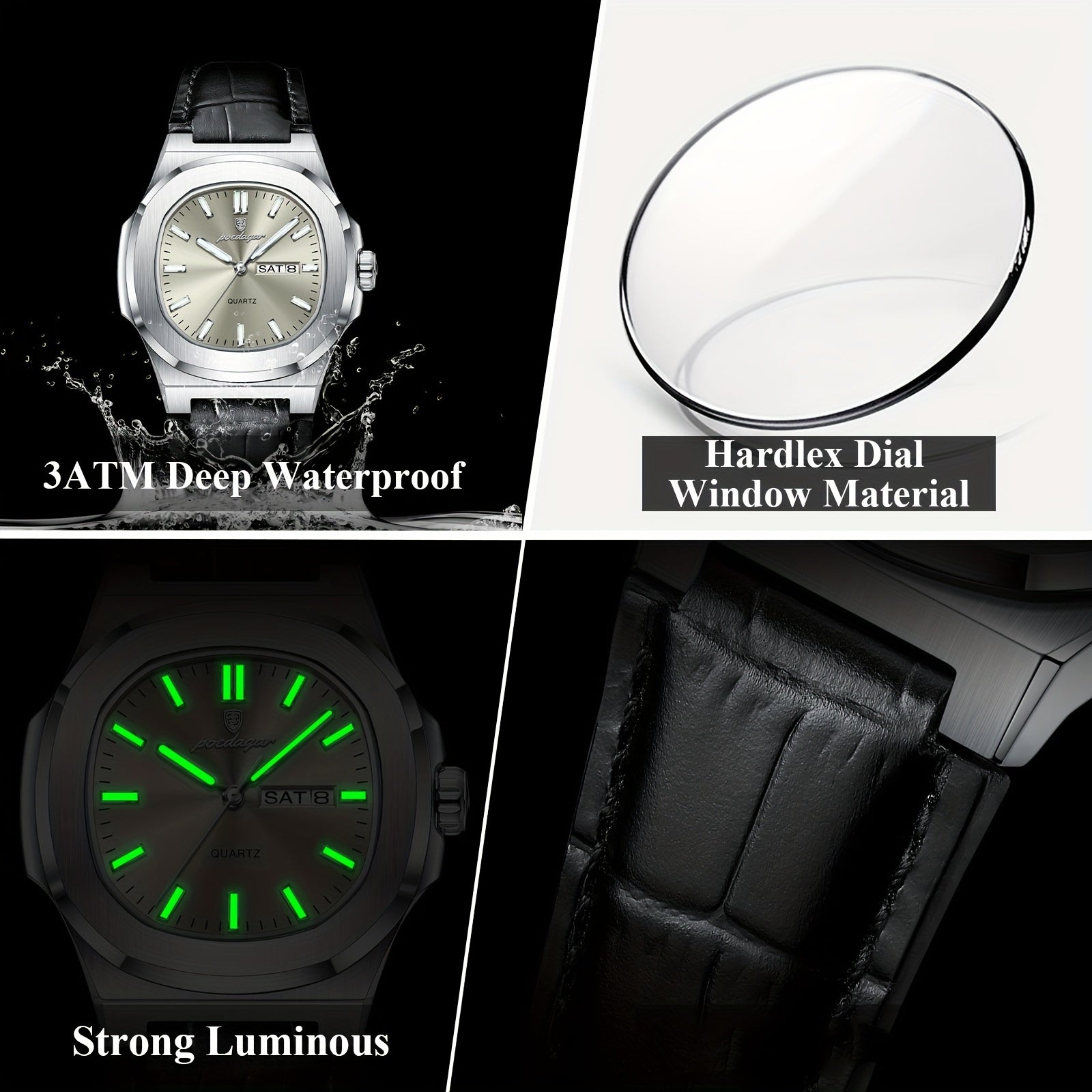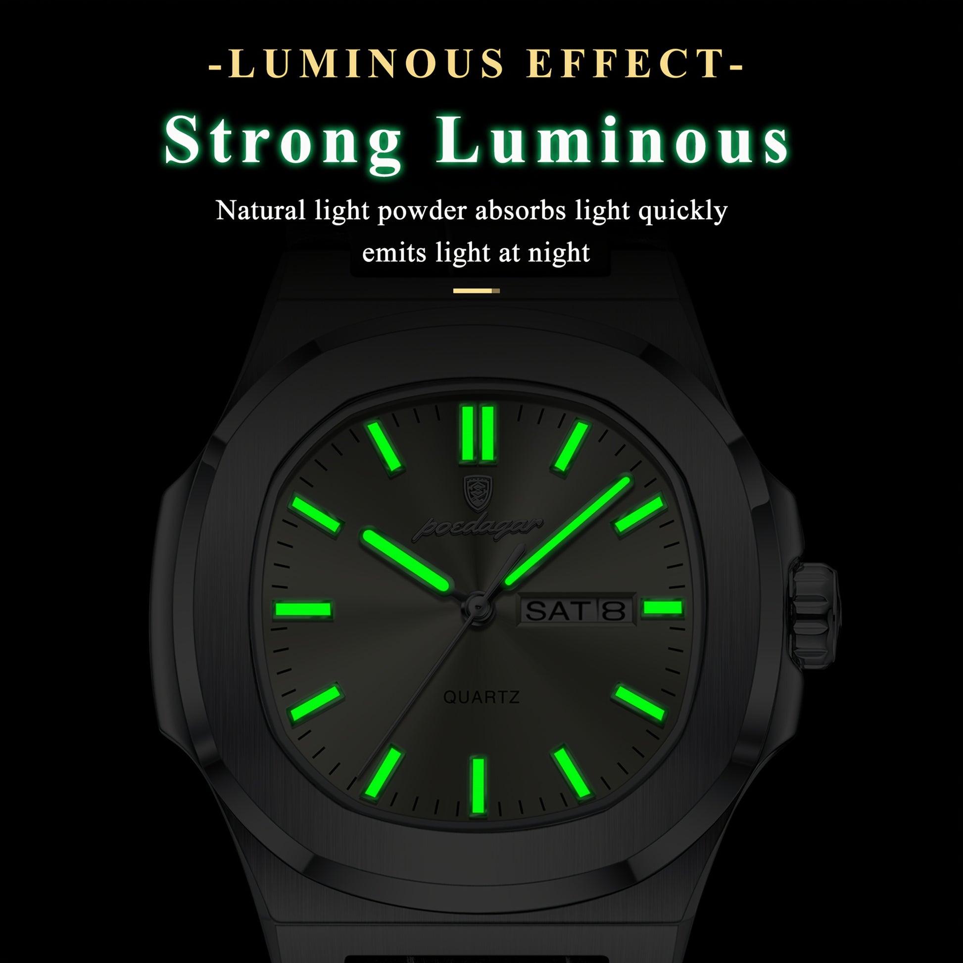 POEDAGAR 2025 new luminous calendar stainless steel square quartz wristwatch fashion trend leisure elegant simple ladies watch.